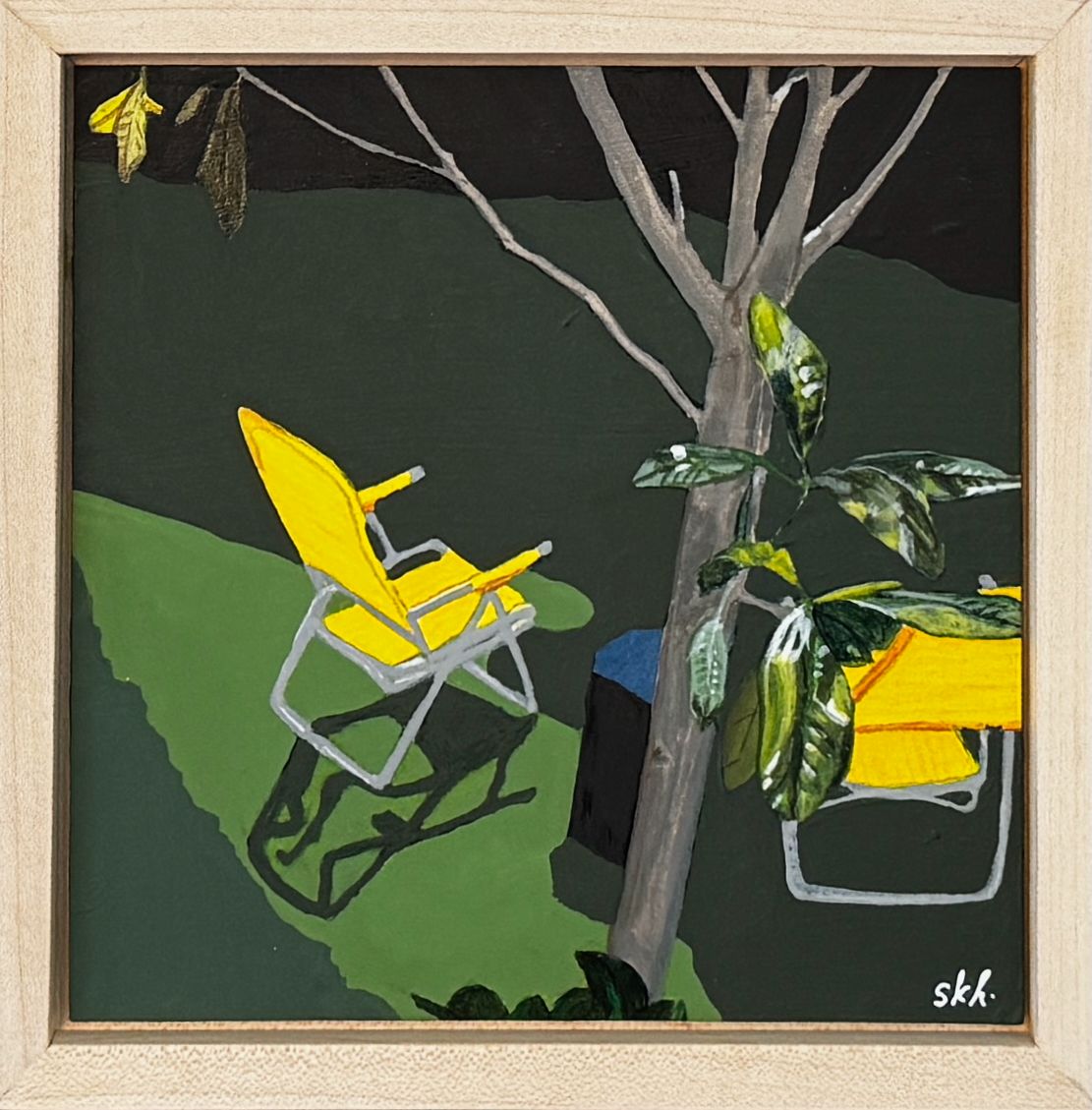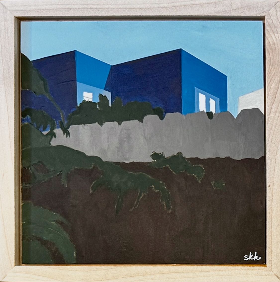 Acrylic on canvas in natural maple floater frame, 2025.